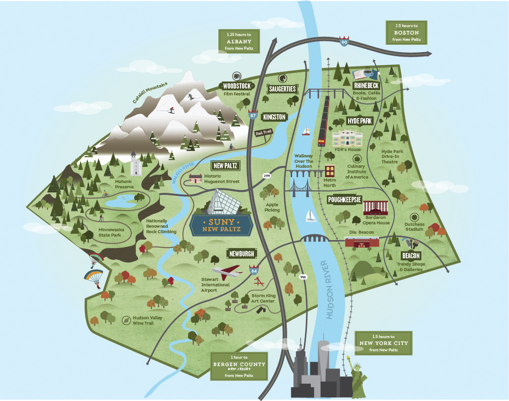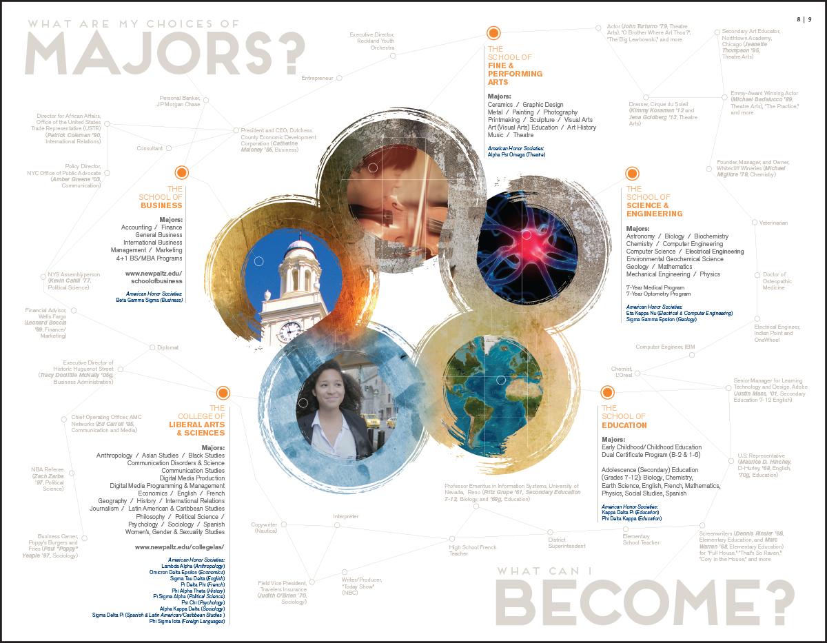 For the 2016 Admissions campaign for the College, I acted as art director, creative lead, and team manager. From start to finish, this project took just under a year to complete.It remains to this day the largest project I’ve ever worked on in terms of scope, ideation, personnel, collateral, and hours. The project consisted of over sixty print pieces, a redesigned Admissions website, an illustrated/interactive map, a main video and five student videos designed in collaboration with an outside company, four in-house faculty videos, numerous branded email and eblasts, and numerous social media feeds. Additionally, over forty students were hand-picked as volunteers and twenty faculty members were recruited for the project. The team itself consisted of a vice president of Admissions, two web designers, a writer, an editor, a digital media manager, a staff photographer, a social media manager, a marketing/pr associate and myself. This Admissions Campaign won an Award of Excellence from UCDA and Best of Category from SUNYCUAD.